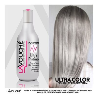 MATIZADOR ULTRA PLATINO LAVOUCHE 300ML Lavouché ULTRA COLOR PLATINO es colaración directa de larga duración que permite crear y mantener looks de alto impacto gracias a su exclusiva formula (Long-lasting vengan color). Gracias a sus activos de origen vegetal permite acondicionar, reparar y humectar profundamente el cabello al tiempo que retiene y protege por más tiempo el color, evitando la oxidación.